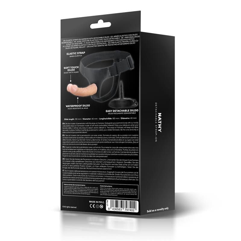 Nathy é um arnês que inclui um vibrador macio como seda. Este vibrador é semi-realista, com veias pronunciadas para maior prazer, e tem um toque incrivelmente sedoso.